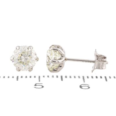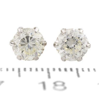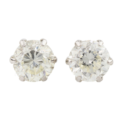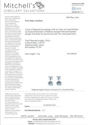 Diamond stud earrings with round Natural Diamonds totalling 2.01ct (Estimated grading: J-K VS). Platinum 900 with 18ct white gold backs. Weight: 1.2g. With Valuation Certificate #420606. (Pre-owned)