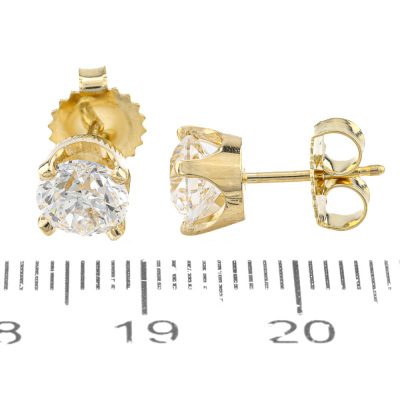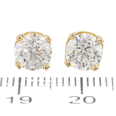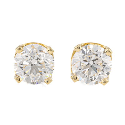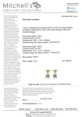 Diamond stud earrings with 2 round brilliant cut Natural Diamonds totalling 2.01ct (with GIA Reports graded as D VS1 #6521938170 & D VS2 #7518927533). 18ct yellow gold. Weight: 2.3g. With Valuation Certificate #421457. (New)