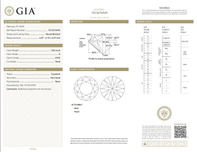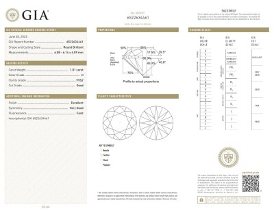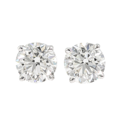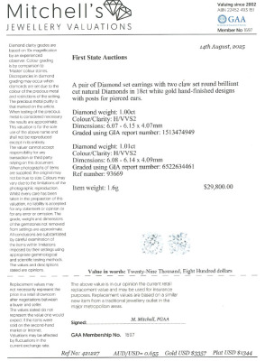 Diamond stud earring with round brilliant cut Natural Diamonds totalling 2.01ct (with GIA Reports graded as H VVS2 #1513474949, 6522634461). 18ct white gold. Weight: 1.6g. With Valuation Certificate #421227. (New)