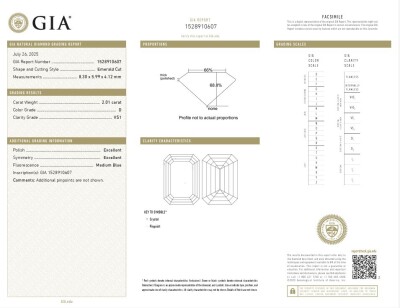 A loose emerald cut natural Diamond of 2.01ct (with GIA report graded as D VS1 #1528910607). (New)
