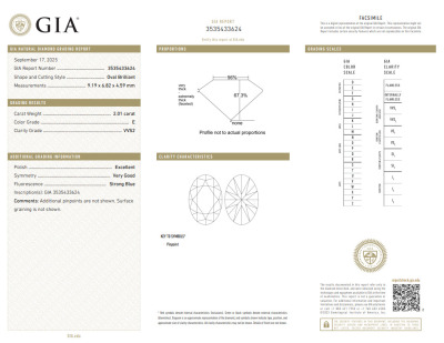 A loose oval shape natural Diamond of 2.01ct (with GIA report graded as E VVS2 #3535433624). (New)