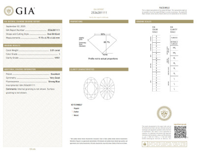 A loose oval shape natural Diamond of 2.01ct (with GIA report graded as I VVS1 #2536281111). (New)