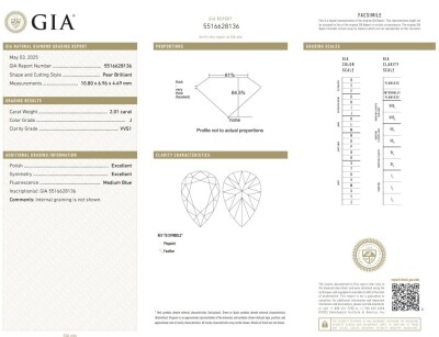 A loose pear shape natural Diamond of 2.01ct (with GIA report graded as J VVS1 #5516628136). (New)
