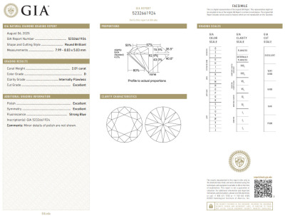 A loose round brilliant cut natural Diamond of 2.01ct (with GIA report graded as D Internally Flawless #5232661924). (New)