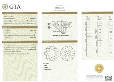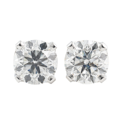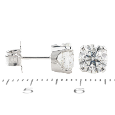 Diamond stud earrings with 2 round brilliant cut Natural Diamonds totalling 2.02ct (with GIA Reports graded as F SI1 #6233546932, 2516916233). 18ct white gold. Weight: 2.2g. (New)
