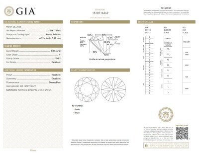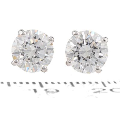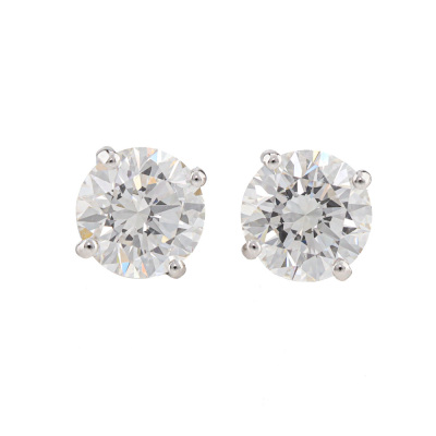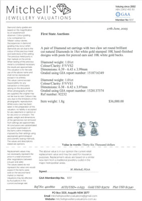 Diamond stud earrings with 2 round brilliant cut Natural Diamonds totalling 2.02ct (with GIA Reports graded as F VVS1 #1528137574 & F VVS2 1518716349). 18ct white gold. Weight: 1.8g. With Valuation certificate #420860. (New)