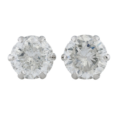 Diamond stud earrings with 2 round brilliant cut Natural Diamonds totalling 2.02ct (Estimated grading: H P1). Platinum-900 with 18ct white gold backs. Weight: 1.2g.