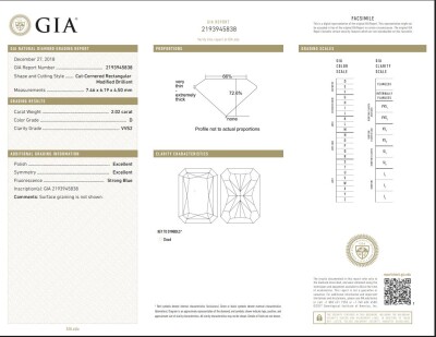 A loose brilliant radiant cut Diamond of 2.02ct (With GIA Report graded as D VVS2 #2193945838).