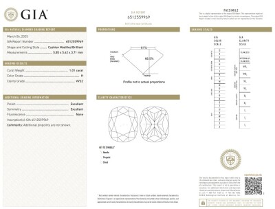 A loose pair of 2 cushion cut Natural Diamonds totalling 2.02ct (both with GIA Reports graded as H VVS1# 6495696504 & H VVS2 #6512559969). (New)