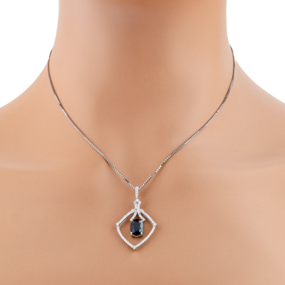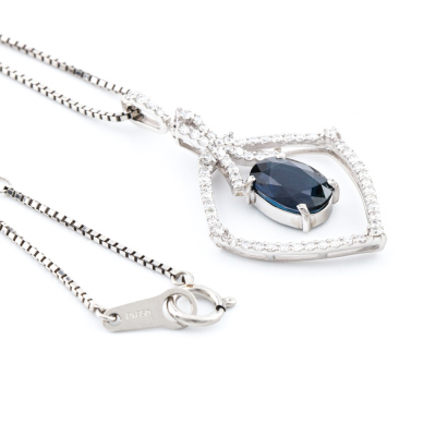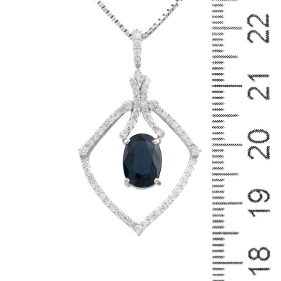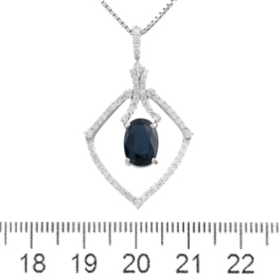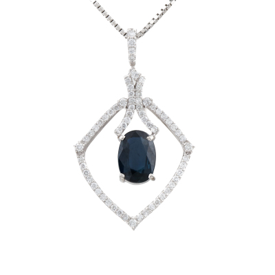 Sapphire and Diamond Pendant with oval shape Natural blue Sapphire of 2.02ct and round Natural Diamonds totalling 0.48ct (Estimated grading: H-I SI). Platinum-900 and Platinum-850 40cm adjustable chain. Weight: 7.1g. (pre-owned)