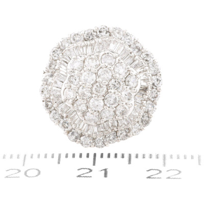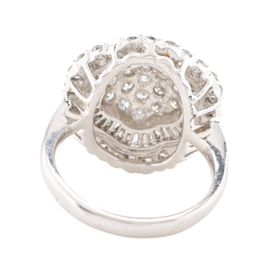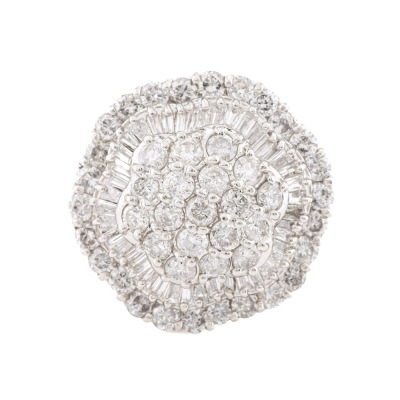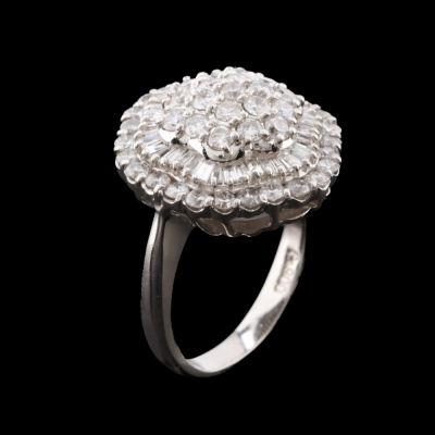 Diamond dress ring with round & baguette cut Natural Diamonds totalling 2.03ct (Estimated grading: G-H SI-P1). Platinum - 900. Ring size L 1/4. Band width: 2.4m - 2.1mm. Weight: 9.6g. (Pre-owned)
