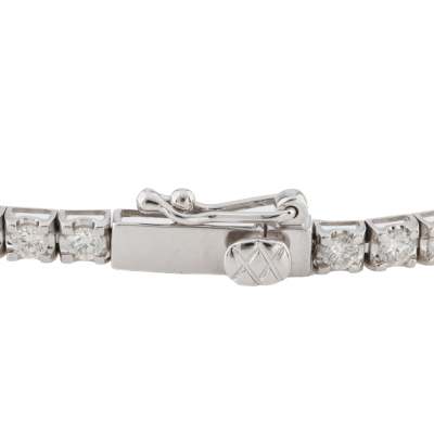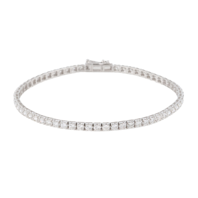Diamond tennis bracelet with 59 round natural diamonds totalling 2.03ct (Estimated grading: H SI). 14ct white gold. Length: 18cm. Weight: 4.3g.