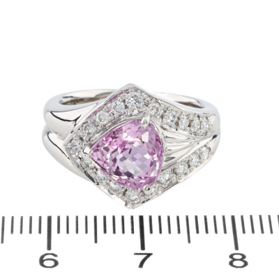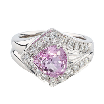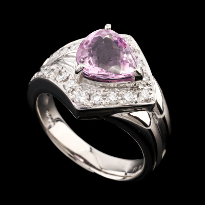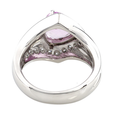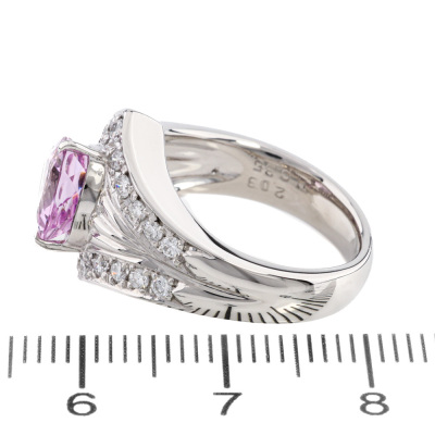 Topaz and Diamond ring with oval shape Natural Imperial Topaz of 2.03ct and round Natural Diamonds totalling 0.35ct (Estimated grading: G VS). Platinum - 900. Ring size: J1/4. Band Width: 3.6mm - 4.5mm. Weight: 11.7g. (pre-owned)