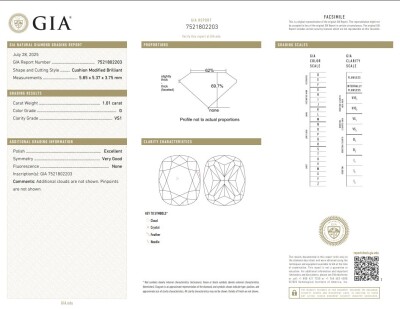 A loose pair of 2 cushion cut Natural Diamonds totalling 2.03ct (both with GIA Reports graded as G VS1# 7521802203 & F VS2 #2527453842