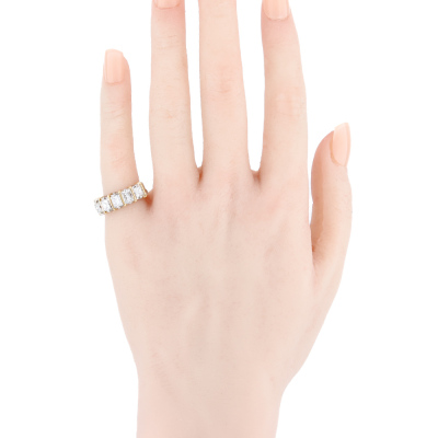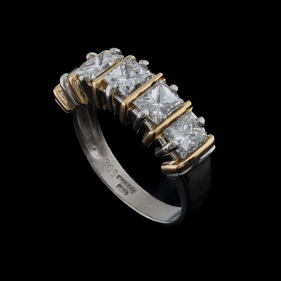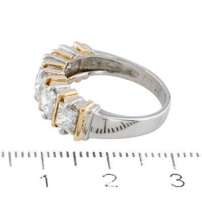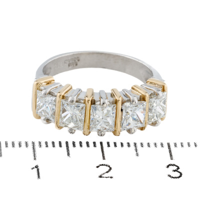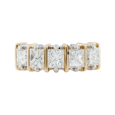 Diamond Eternity Ring with 5 princess cut Natural Diamonds totalling 2.03ct (Estimated grading: HIJ VS). 18ct yellow gold and Platinum - 900. Ring size L. Band width: 2.9mm - 4.4mm. Weight: 7.1g. (Pre-owned)