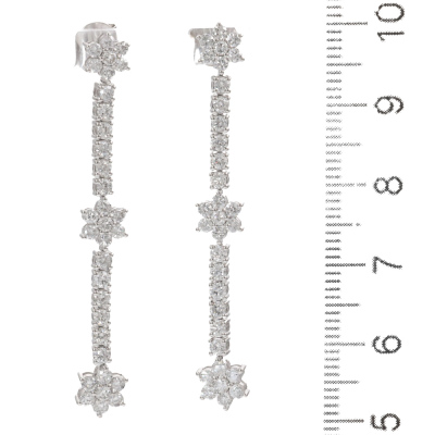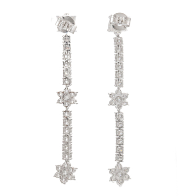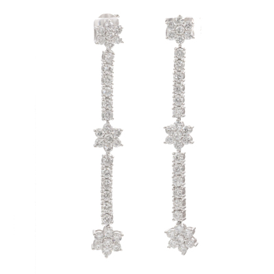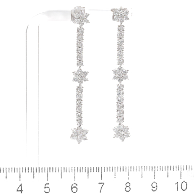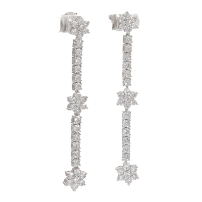 Diamond drop earrings with 66 round natural Diamonds totalling 2.04ct (Estimated grading: H SI). 14ct white gold. Length: 5.0cm. Weight: 4.7g (New)