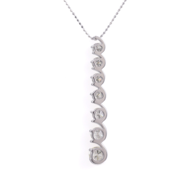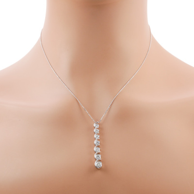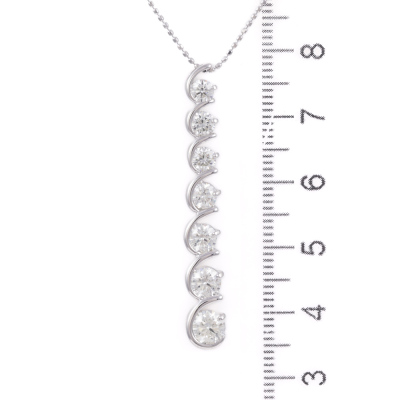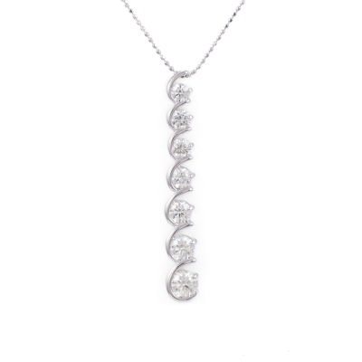 Diamond drop pendant with 7 graduated round Natural Diamonds totalling 2.05ct (Estimated grading: I-J VS). Platinum - 950 with 18ct white gold adjustable 45cm chain. Weight: 7.8g. (Pre-owned)