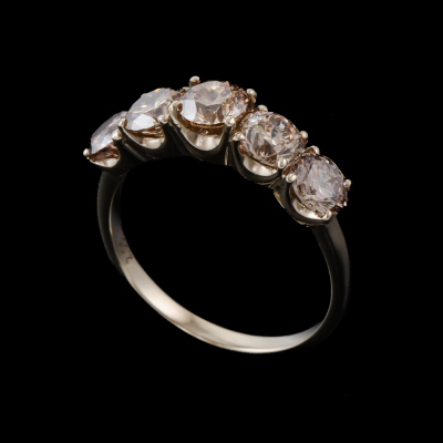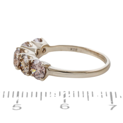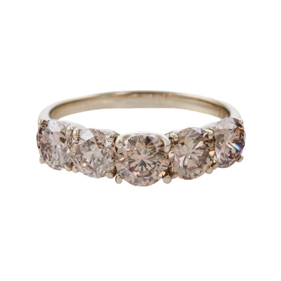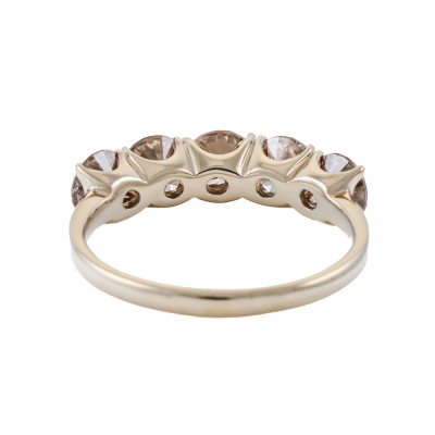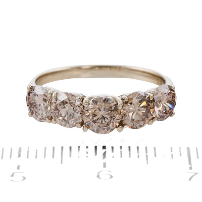 Diamond eternity ring with 5 round Natural Diamonds totalling 2.06ct (Estimated grading: Champagne - Dark Champagne VS-SI). 18ct white gold (XRF tested as 18ct white gold without white rhodium plating, stamped K18). Ring size: K1/4. Band width: 1.8mm. Weight: 2.8g. (Pre-owned)
