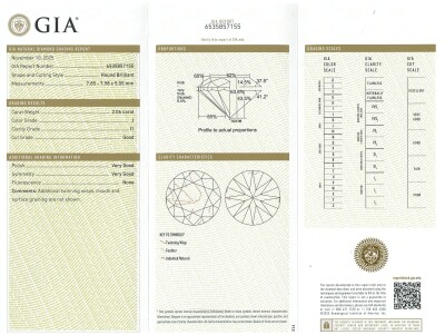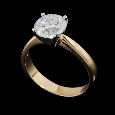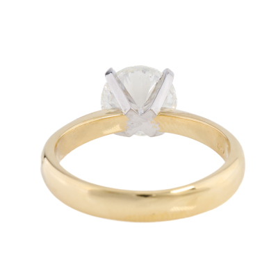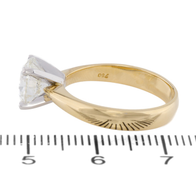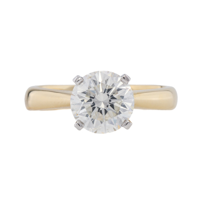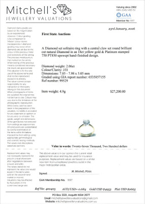 Diamond solitaire ring with round brilliant Natural Diamond of 2.06ct (with GIA Report graded as J P1 #6535857155). 18ct yellow gold and Platinum - 850. Ring size L3/4. Band width: 3.5mm - 2.7mm. Weight: 4.9g. With Valuation Certificate #422406.