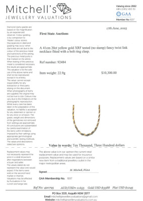 Fancy link chain necklace. 20ct yellow gold. (XRF tested, no stamp). Length: 41cm. Weight: 22.9g. With Valuation Certificate #420795. (Pre-owned)