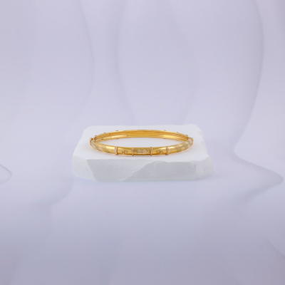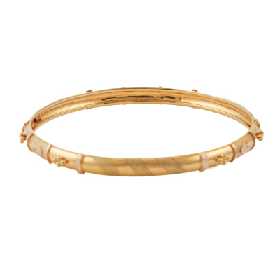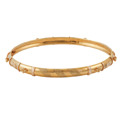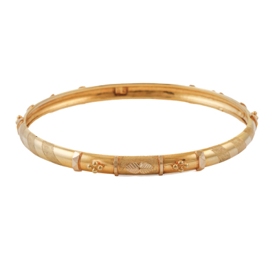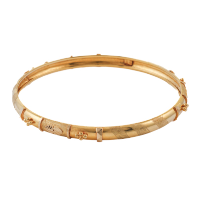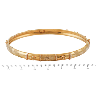 Textured gold bangle. 20ct yellow gold confirmed by XRF testing (stamped 'KDM 750'). Inner circumference: 20.5cm. Width: 5.5mm. Weight: 11.0g. (Pre-owned)