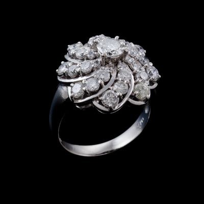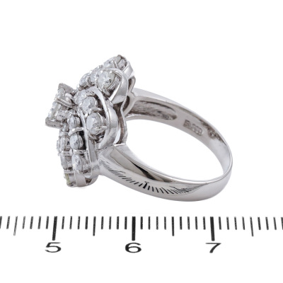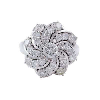 Diamond dress ring with round Natural Diamonds totalling 2.10ct (Estimated grading: HIJ P1). Platinum - 900. Ring size L1/2. Band width: 2.8mm - 4mm. Weight: 10.3g. (Pre-owned)