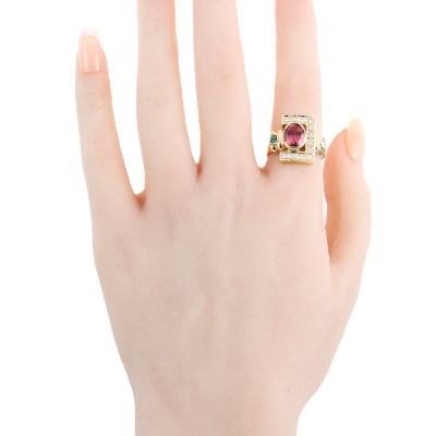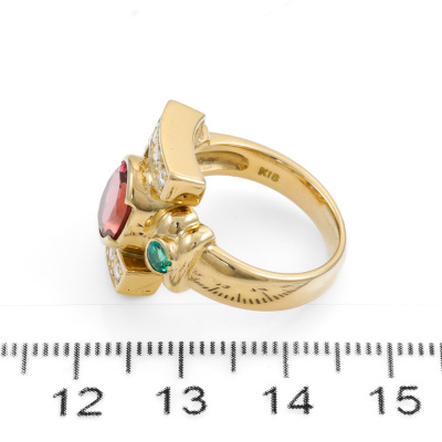 2.10ct Tourmaline, Emerald and Diamond Ring