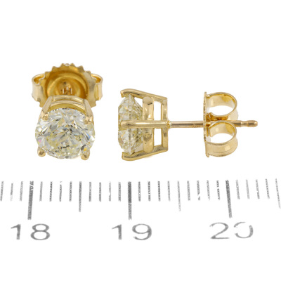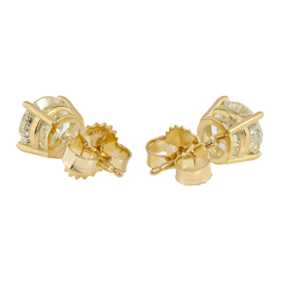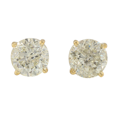 Diamond stud earring with round brilliant cut Natural Diamonds totalling 2.13ct (Estimated grading Natural Light Yellow P2-P3). 18ct yellow gold. Weight: 1.8g.