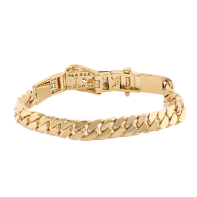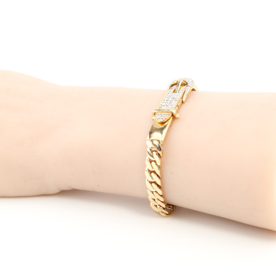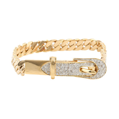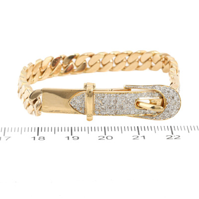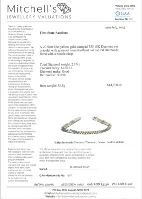 Diamond chain bracelet with buckle clasp, set with round Natural Diamonds totalling 2.17ct (Estimated grading: I-J SI-P1). 18ct yellow gold. Length: 20.5cm. Wrist size: 17.5cm. Weight: 33.5g. With Valuation Certificate #421069. (Pre-owned)