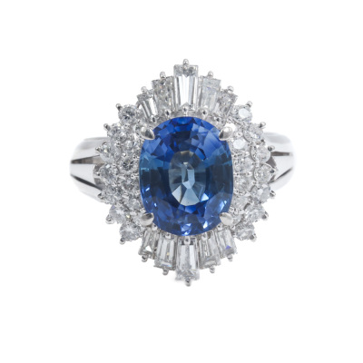 2.18ct Blue Sapphire and Diamond Ring