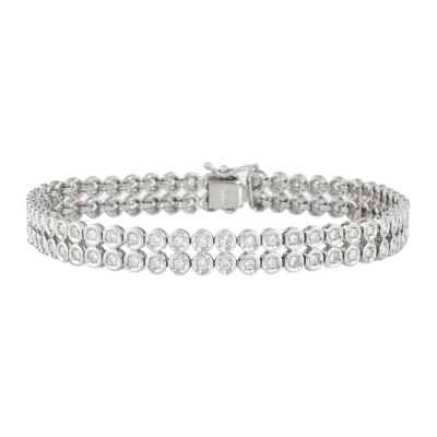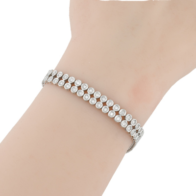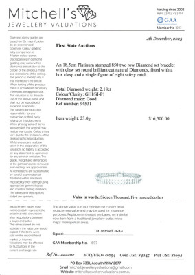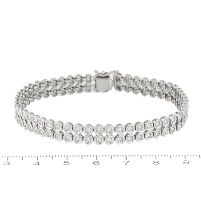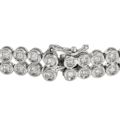 Two row Diamond bracelet with round Natural Diamonds totalling 2.18ct (Estimated grading: GHI SI-P1). Platinum - 850. Length: 18.5cm. Width: 7.2mm. Weight: 23.0g. With Valuation Certificate #422202. (Pre-owned)