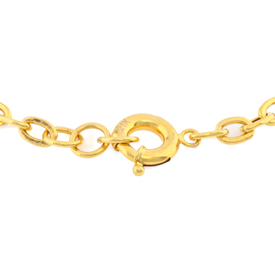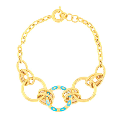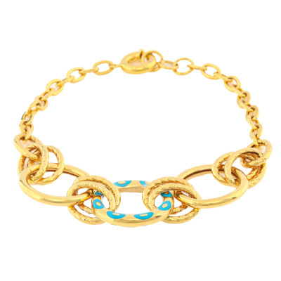 Gold round link bracelet with centre blue enamel link. 21ct yellow gold. Maximum adjustable length: 20cm. Weight: 9.2g.