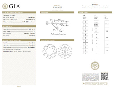 A loose round brilliant cut natural Diamond of 2.25ct (with GIA Report graded as E Internally Flawless #5232696298). (New)