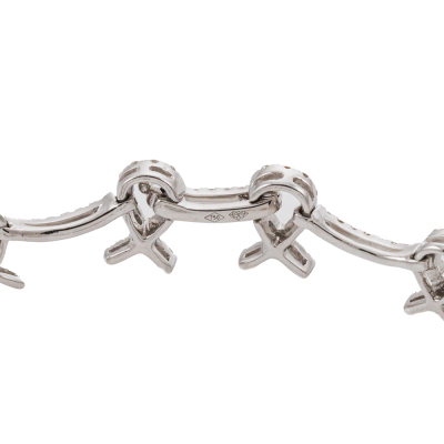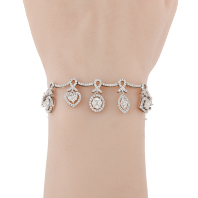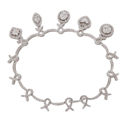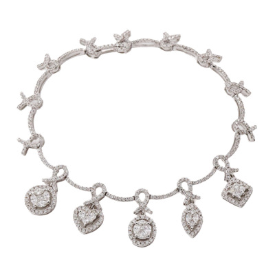 Ribbon design bracelet with five multi-shape central motifs. With round, princess, marquise and fancy cut Natural Diamonds totalling approximately 2.30ct (Estimated grading: G-H SI). 18ct white gold. Length: 17.5cm. Weight: 13.6g. (Pre-owned).
