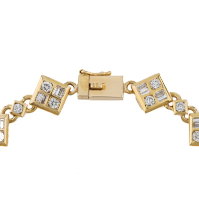Diamond bracelet with round & baguette cut Natural Diamonds totalling approximately 2.32ct (FSA Estimated grading: G SI-P1). Length: 17cm. Weight: 16.7g. With Valuation Certificate dated 04/05/25. (Pre-owned)