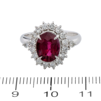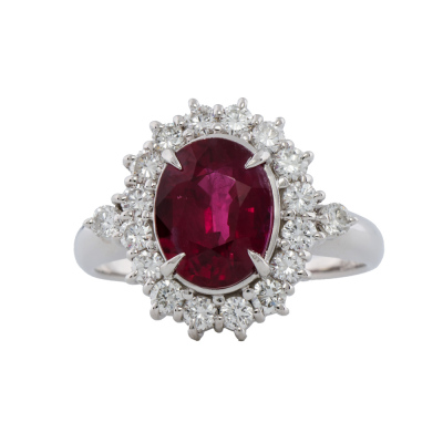 2.38ct Pigeon Blood Ruby & Diamond Platinum Ring