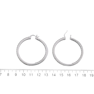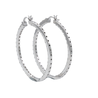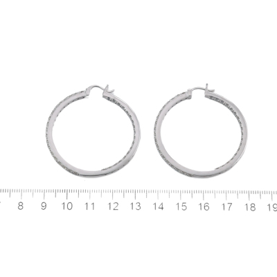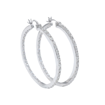 Diamond inside out hoop earrings with 74 round Natural Diamonds totalling 2.40ct (Estimated grading: H-I SI). Back of the hoop has the Diamonds set inside the hoop. 14ct white gold. Hoop diameter: 4.2mm. Weight: 13.7g. With Certificate #420243. (New)