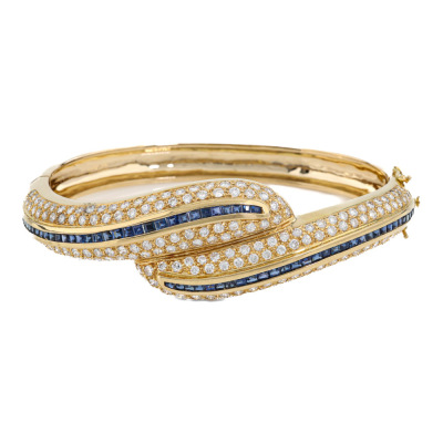 2.41ct Sapphire & 3.64ct Diamond Bangle 18ct Gold 30.6g