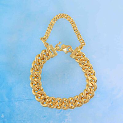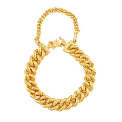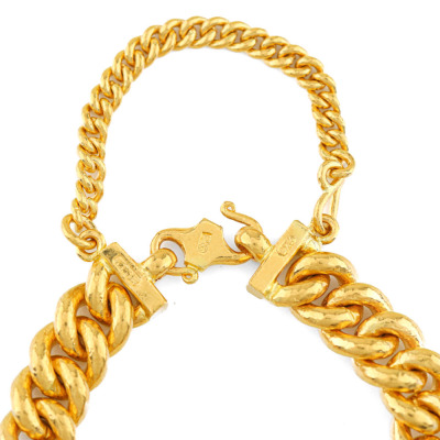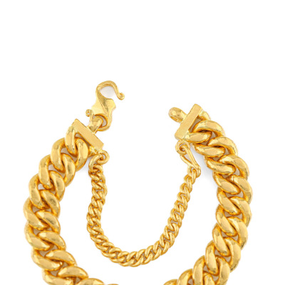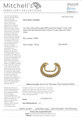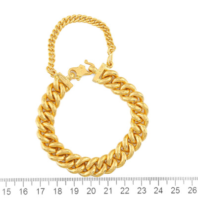 Curb link chain bracelet. 24ct yellow gold. (XRF tested, no stamp). Length: 18cm, safety chain length: 8cm. Width: 11mm. Weight: 128.6g. With Valuation Certificate #420798. (Pre-owned)
