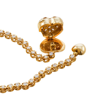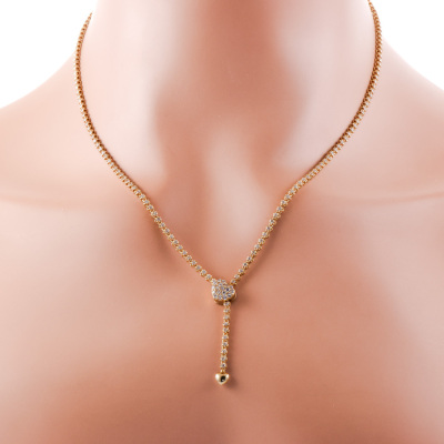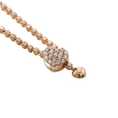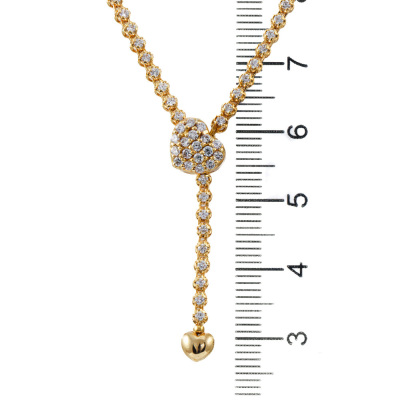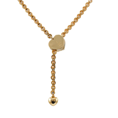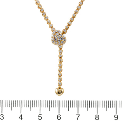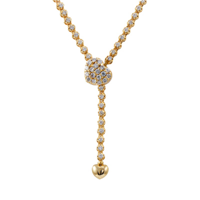 Diamond lariat necklace with round Natural Diamonds totalling 2.50ct (Estimated grading: H SI). Hinged heart shape clasp opens to adjust length. Max length: 47cm. 18ct yellow gold. Weight: 11.4g. With Valuation Certificate. (Pre-owned)