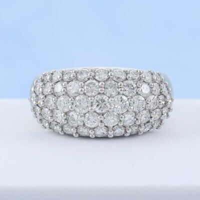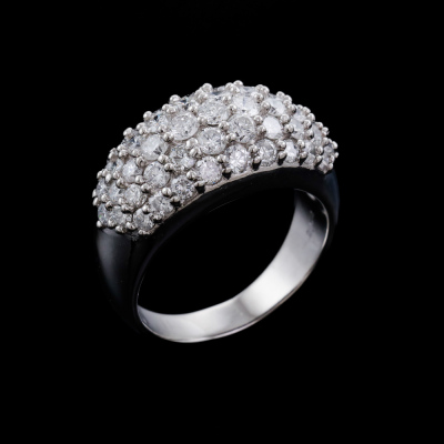 Diamond dress ring with round Natural Diamonds totalling 2.54ct (Estimated grading: G-H SI). Platinum - 900. Ring size Q1/4. Band width: 4mm - 5mm. Weight: 17.8g. (Pre-owned)