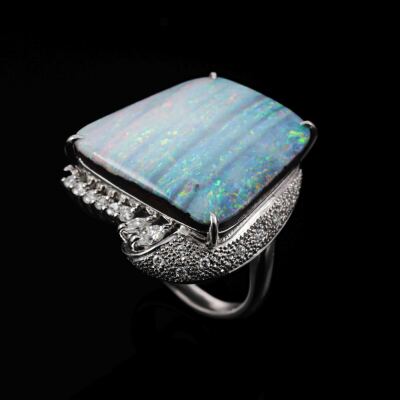 25.86ct Boulder Opal & 0.63ct Diamond Ring