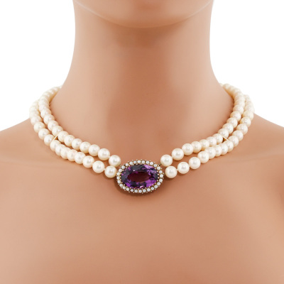 26.53ct Amethyst and Akoya Pearl Necklace