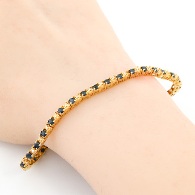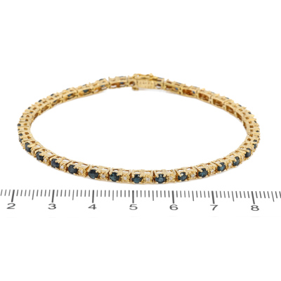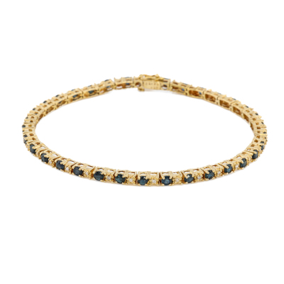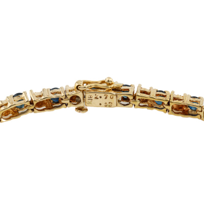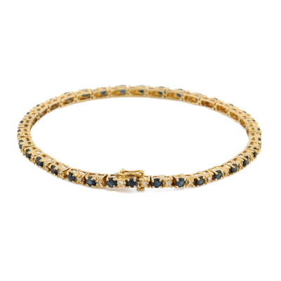 Sapphire and Diamond bracelet with round Natural blue Sapphires totalling 2.70ct and round Natural Diamonds totalling 0.13ct. 18ct yellow gold. Length: 18.5cm. Weight: 9.9g (Pre-owned)