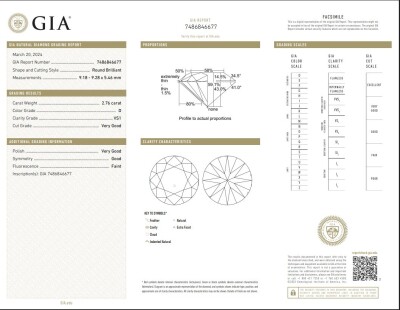 A loose round brilliant cut Natural Diamond of 2.76ct (with GIA Report graded as D VS1 #7486846677). (Pre-owned)