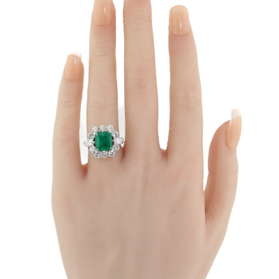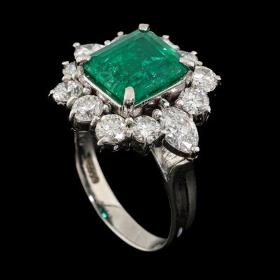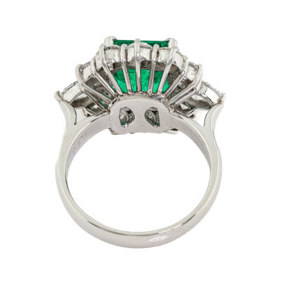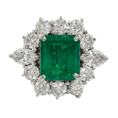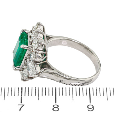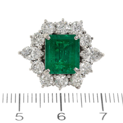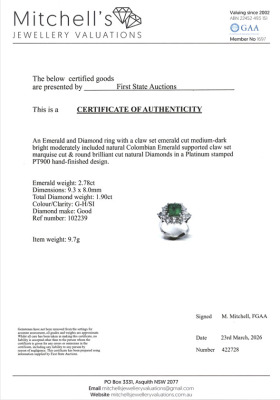 Emerald and Diamond ring with centre emerald cut Natural Colombian Emerald of 2.78ct and round & marquise cut Natural Diamonds totalling 1.90ct (Estimated grading: GH SI). Platinum - 900. Band width: 2.9mm - 3.0mm With Certificate #422728.