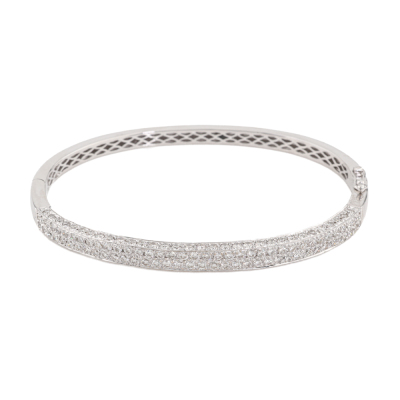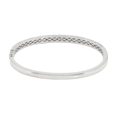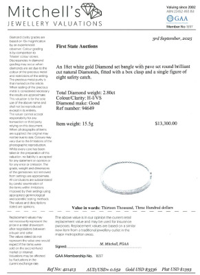 Hinged Diamond bangle with round Natural Diamonds totalling 2.80ct (Estimated grading: H-I VS). 18ct white gold. Inner circumference: 16cm. Weight: 15.5g. With Certificate #421413. (Pre-owned)
