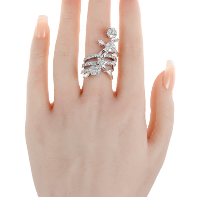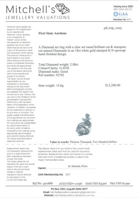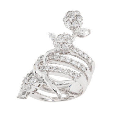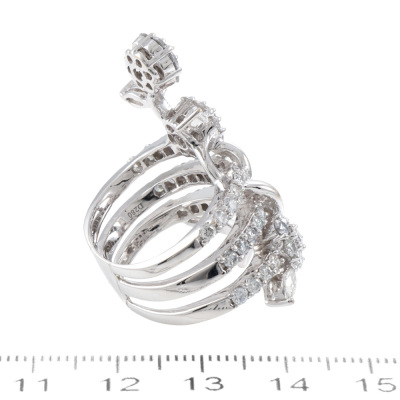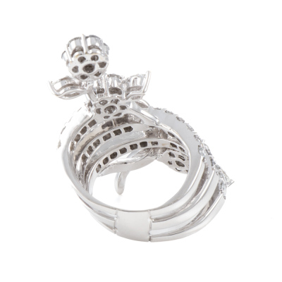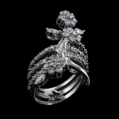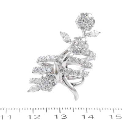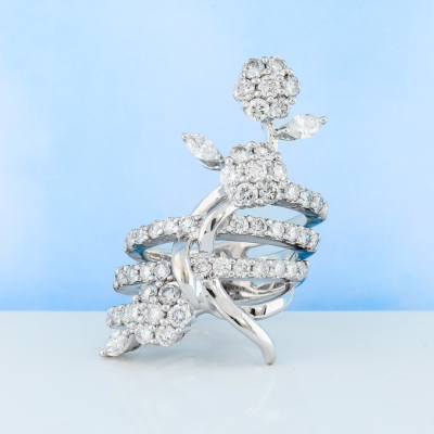 Flora design ring with round & marquise cut Natural Diamonds totalling 2.80ct (Estimated grading: G-H SI). 18ct white gold. Ring size K½. Band width: 7.4mm. Weight: 14.6g. With Valuation Certificate #420886. (Pre-owned)