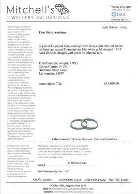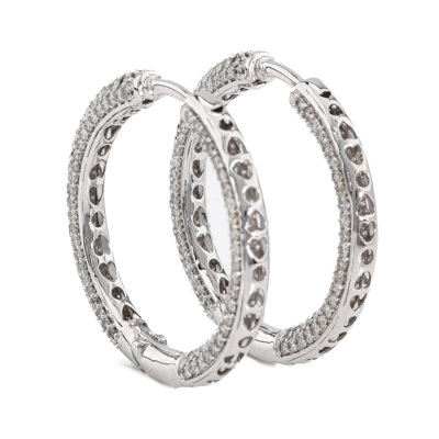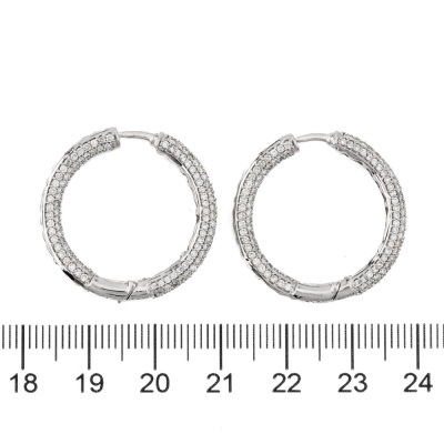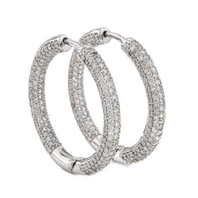 Inside-out hoop earrings with 474 round Natural Diamonds totalling 2.96ct (Estimated grading: H-I SI). 14ct white gold. Hoop diameter: 2.6cm. Width: 3.4mm. Weight: 7.2g. With Valuation Certificate #421814..