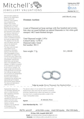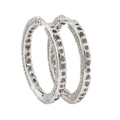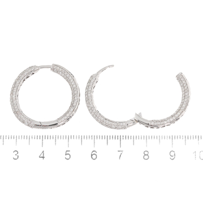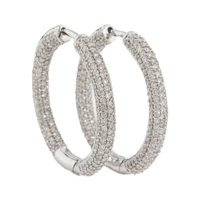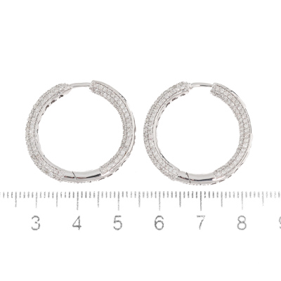 Diamond inside out hoop earrings with 474 round Natural Diamonds totalling 2.97ct (Estimated grading: I-J SI-P1). 14ct white gold. Round shape, hoop outer diameter: 27cm. Width: 3.5mm. Weight: 7.7g. With Valuation Certificate #420278.